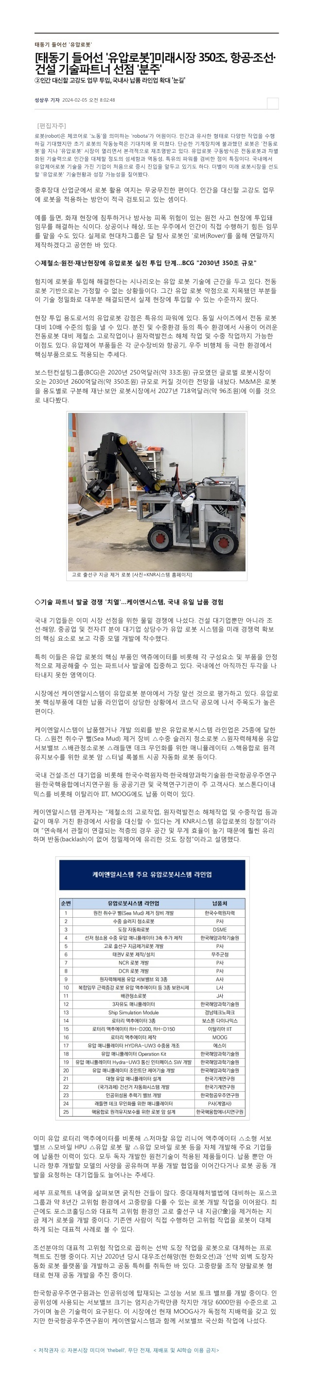 - 이전글2024.02.07_[더벨] 전동로봇 '일색' 코스닥 업계, 케이엔알시스템 유압 '유일' 24.02.07