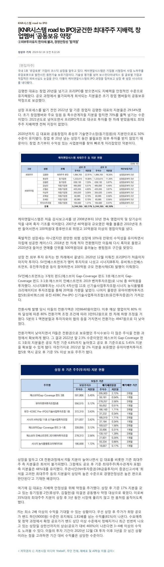 2024.02.16_[더벨] 굳건한 최대주주 지배력, 창업멤버 '공동보유 약정'