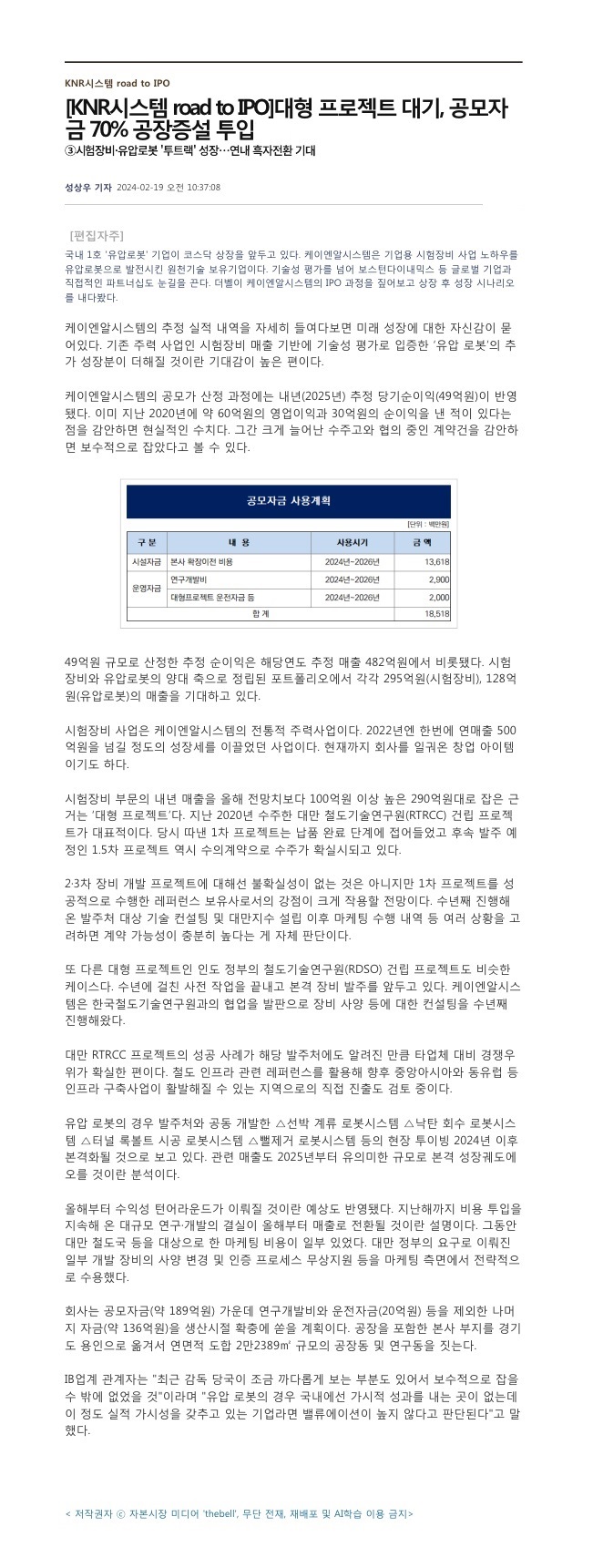 2024.02.19_[더벨] 대형 프로젝트 대기, 공모자금 70% 공장증설 투입