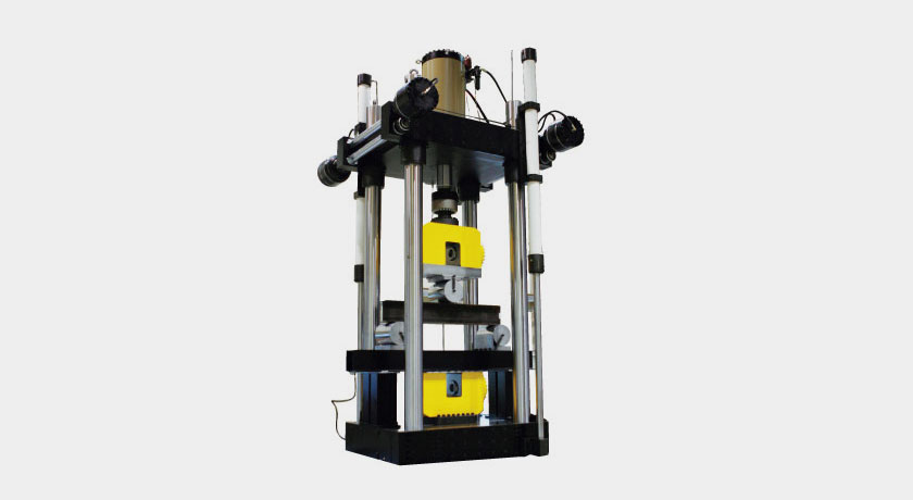 This is the equipment to perform static stiffness and fatigue tests about long supporting beams or highway bridge components at full size in the civil engineering field.