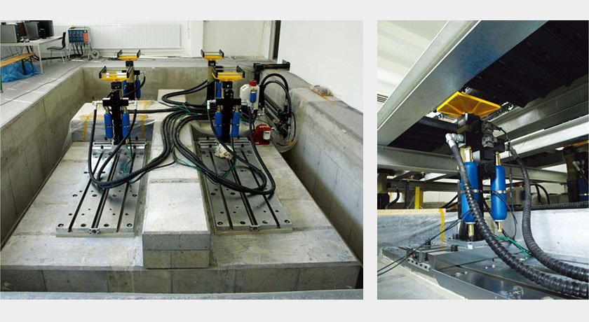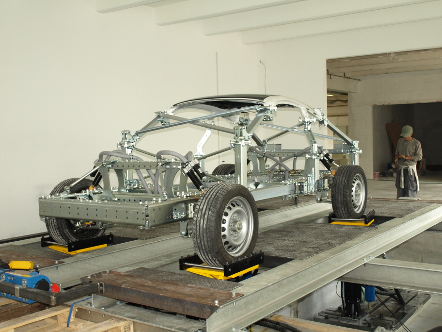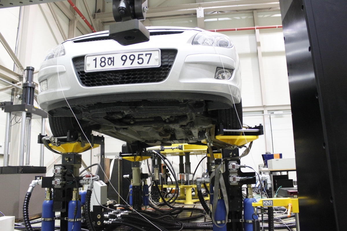 4,Post Road Simulation System, which is the system to simulate the actual road environment, is desined for the durability and NVH test of completed vehicles and chassis parts by using hydrostatic bearing actuator.