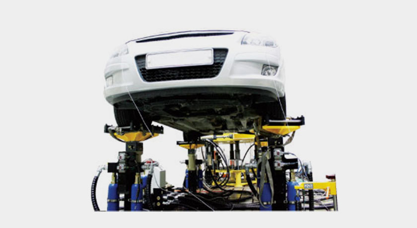 The 4 post road simulator is designed for the full vehicle road simulation, durability & NVH testing by using low noise hydrostatic bearing actuators.