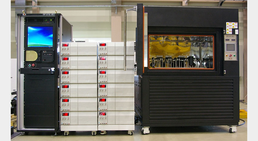 This system can test durability of the EVP (Electric Vacuum Pump) with testing 12 specimens at the same time in the environmental chamber.